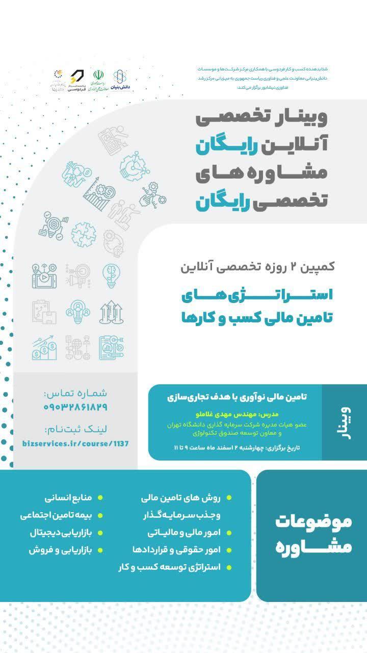 • کمپین دو روزه تخصصی آنلاین استراتژی های تامین مالی کسب و کارها